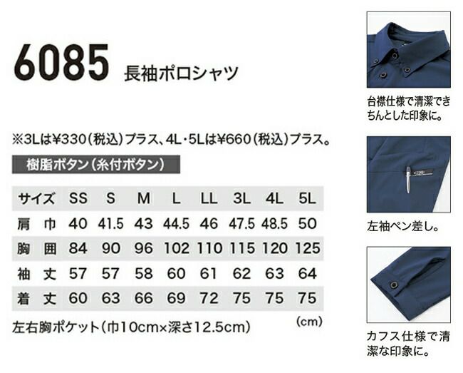 他の画像を見る 清涼感のある着心地!ドライタッチポロシャツ XEBEC ジーベック カノコ長袖ポロシャツ 6025 販売価格 ¥ 2,518 税込 〜 販売価格 ¥ 税込 詳細を見る お気に入りに登録する