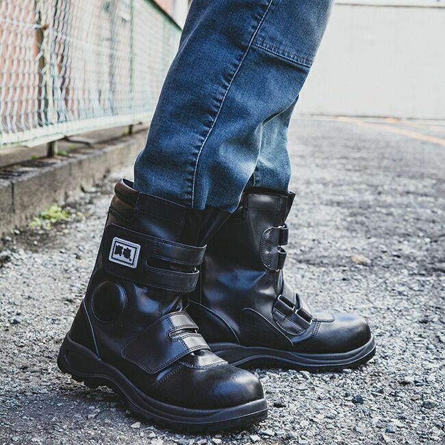 つま先とかかと部は本革仕様。足元をしっかり固めるロングタイプの安全長マジックです。