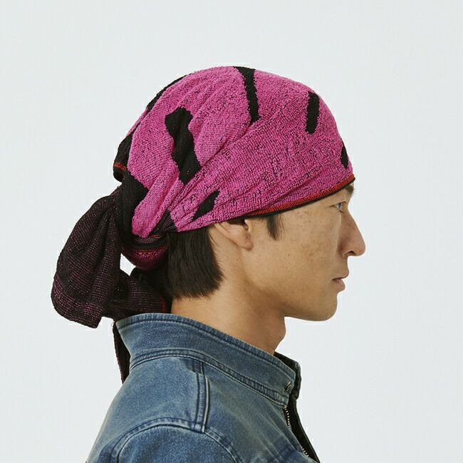 タオルに収まりきらないほど、大きなピンクの寅壱ロゴが注目の的。