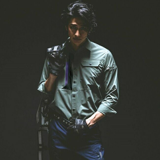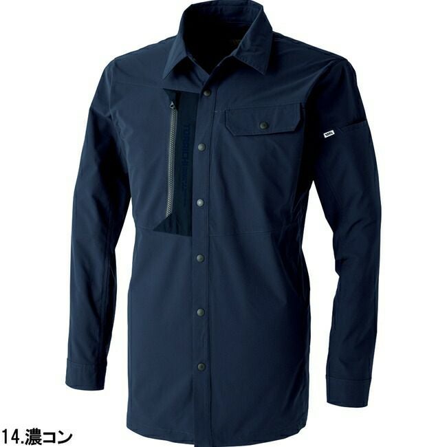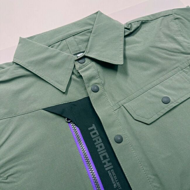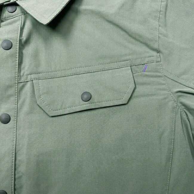 ●前開き・袖口には、軽量の強化プラスティックのドット釦を使用