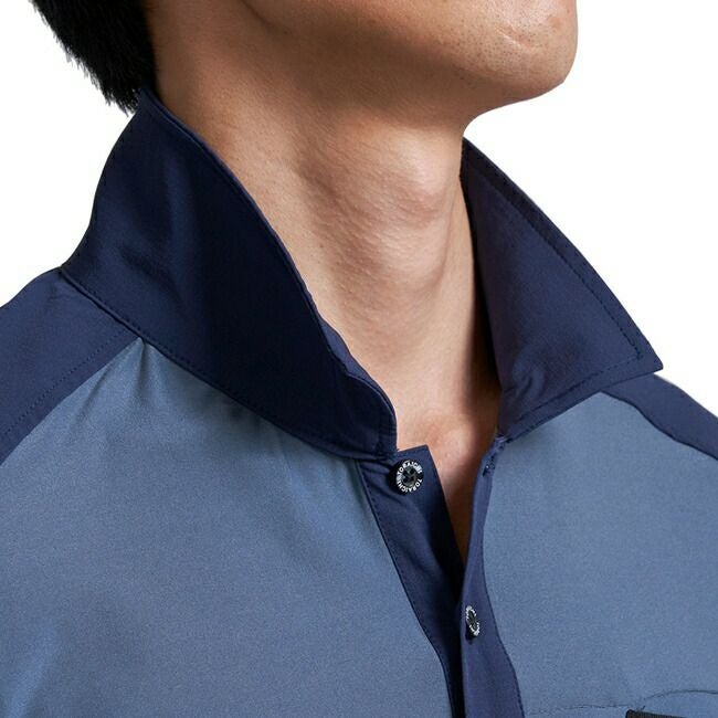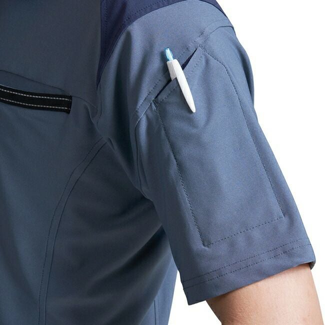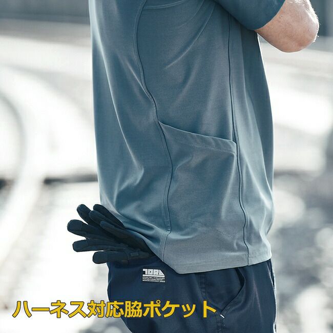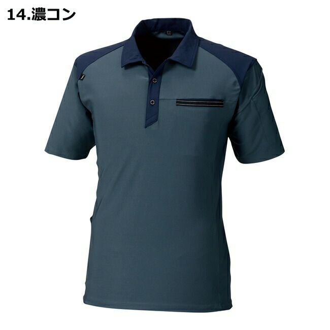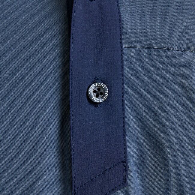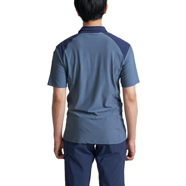 肩や衿に摩耗防止の布帛素材をプラスした半袖ポロシャツ。