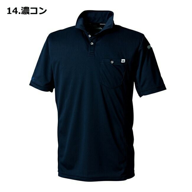 ペン差しポケットの配色切り替えがアクセントの半袖ポロシャツ。