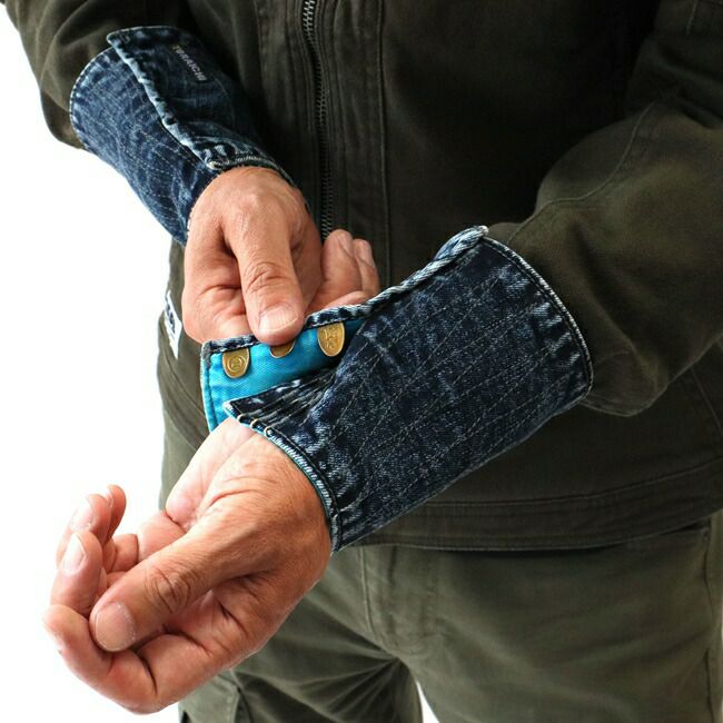 Wブリーチ(ケミカルウォッシュ)加工の定番デニムの手甲。