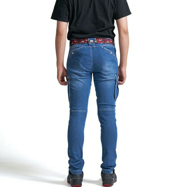 7.3オンス薄手デニム素材に鉱物練り込みナイロン糸を混紡し熱を発散。
