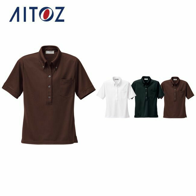 オープンカラーのボタンダウンニットシャツ。 AZ-861207 アイトス レディース半袖ニットボタンダウンシャツ