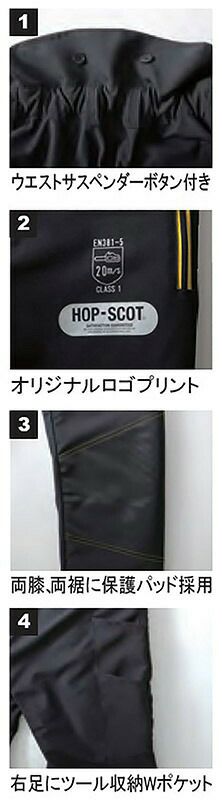6層構造の保護素材で右足、両膝、両裾に保護パット採用し優れた耐摩耗性でリスク軽減。右足にツール収納Wポケット付き。