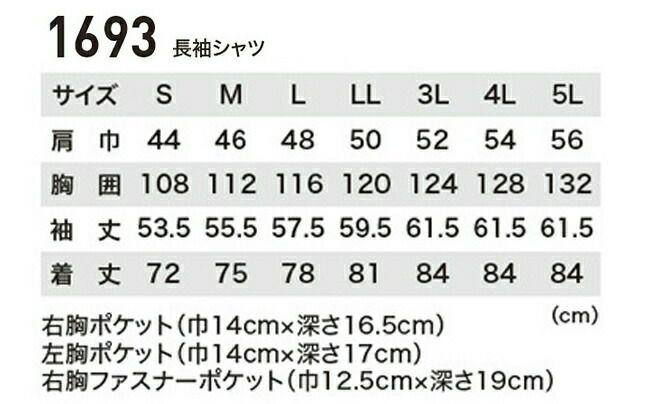XEBEC ジーベック 長袖シャツ 1633
