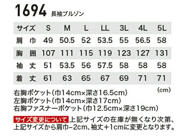 XEBEC ジーベック 長袖ブルゾン 1634