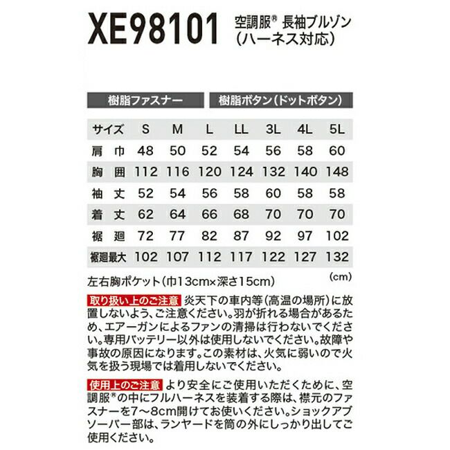XEBEC ジーベック T100%遮熱ハーネス長袖ブルゾン XE98103