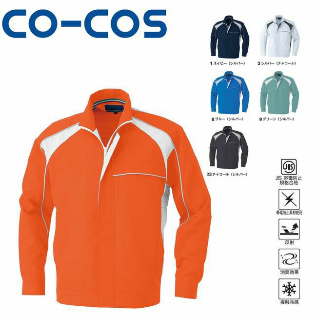 縦プリント入れ可能デザイン。縦にプリントを入れることで、インパクトがありアピール力抜群! コーコス A-5081 長袖ブルゾン JIS 帯電防止 反射 消臭 接触冷感