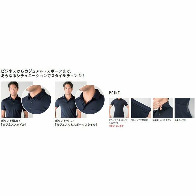 ドライ感があり、動きやすいストレッチ天竺素材使用。スポーツからビジネスまで幅広く着用できるスマート設計。 A-247 ストレッチ ボタンダウン 半袖ポロ