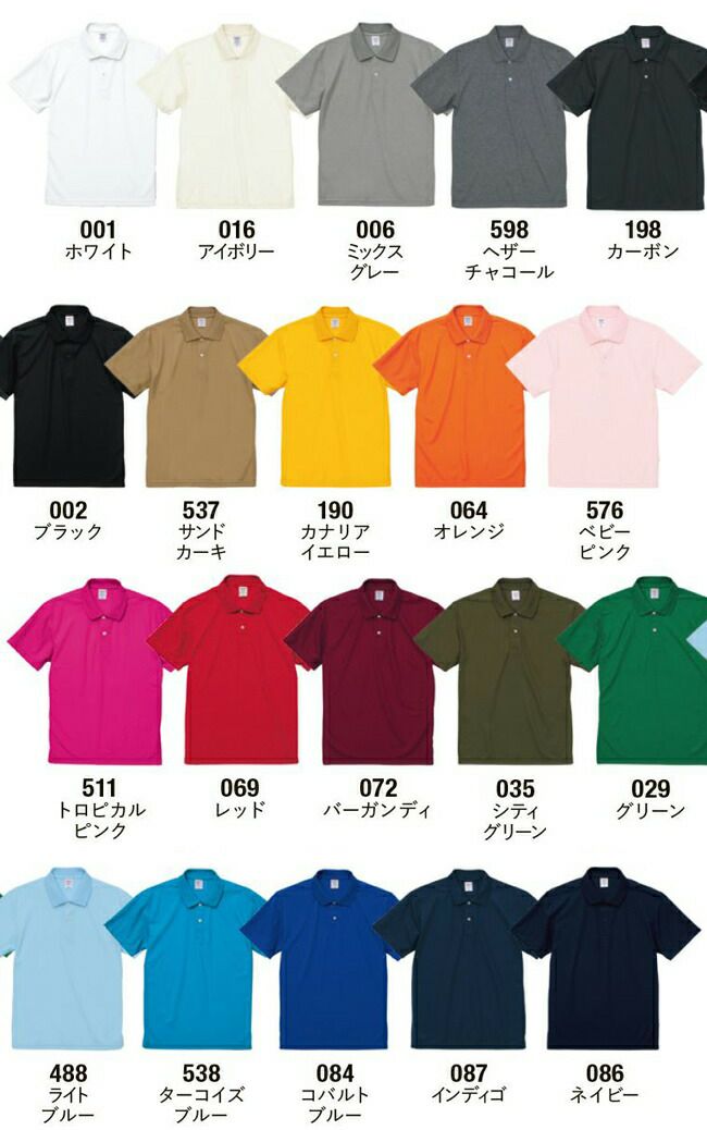 カラー :1:ホワイト,2:ブラック,6:ミックスグレー,16:アイボリー,29:グリーン,35:シティグリーン,64:オレンジ,69:レッド,72:バーガンディ,84:コバルトブルー,86:ネイビー,87:インディゴ,190:カナリアイエロー,198:カーボン,488:Lブルー,511:トロピカルピンク,537:サンドカーキ,538:ターコイズブルー,576:ベビーピンク,598:ヘザーチャコール