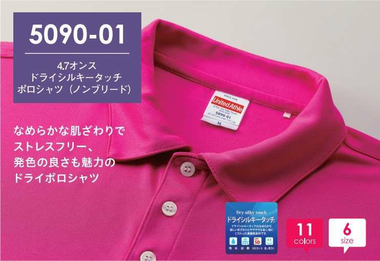 ユナイテッドアスレ(United Athle) 4.7オンス ドライシルキータッチ ポロシャツ(ノンブリード) 5090-01
