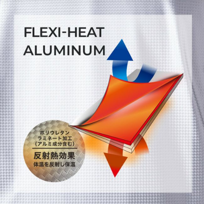 PUアルミシルバーフィルムを採用した画期的なストレッチ防風素材「フレクシーヒート」を使用したシリーズ。