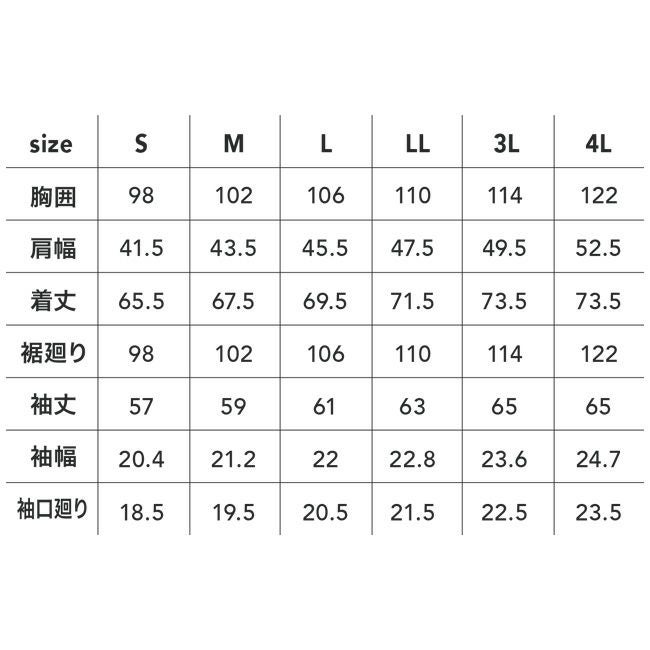 サイズ S、M、L、LL、3L、4L