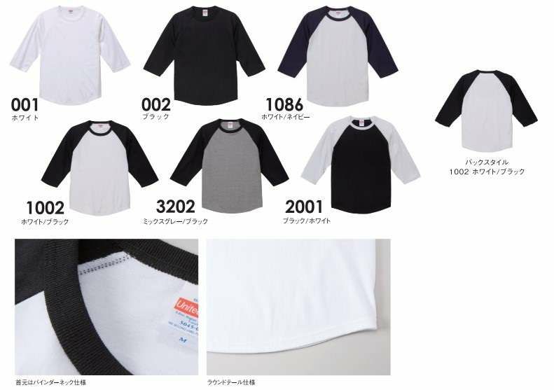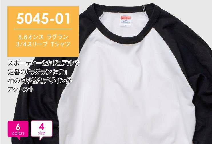 ユナイテッドアスレ(United Athle) 5.6オンス ラグラン 3/4スリーブ Tシャツ 5045-01