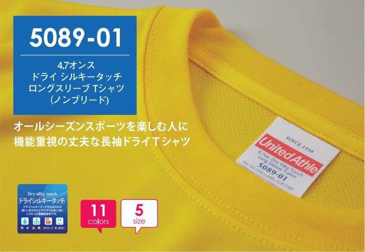 ユナイテッドアスレ(United Athle) 4.7オンス ドライシルキータッチロングスリーブ Tシャツ(ノンブリード 5089-01