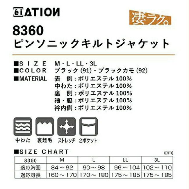 他の画像を見る ピンソニックキルト キルト部分に縫い目がないため、中わたが飛び出しません。 裏地は起毛になっており、暖かくソフトな風合いの着心地です。 カジメイク ピンソニックキルトジャケット 8360 販売価格 ¥ 2,728 税込 カートに入れる お気に入りに登録する
