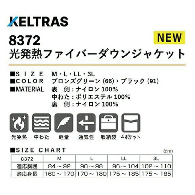 他の画像を見る 中わたにはリサイクル再生繊維を使用しています。 光と熱を吸収し発熱するため寒い日でも暖かく快適に過ごせます。 カジメイク 光発熱ファイバーダウンジャケット 8372 販売価格 ¥ 3,278 税込 カートに入れる お気に入りに登録する
