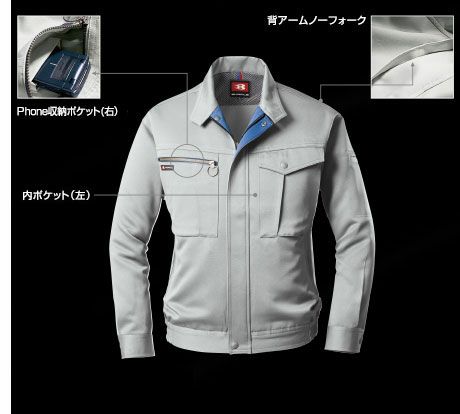 素材/高密度ポリエステルツイル、撥水加工、制電ケア設計、メカニカルストレッチ