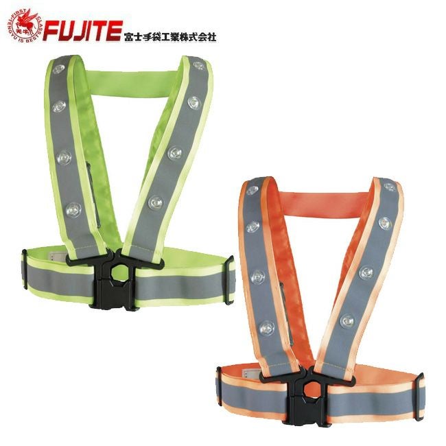 富士手袋 LEDテープベスト ハーネス・電動ファン対応 8275 | 反射ベスト 反射 LED テープベスト 安全 安全ベスト バックル 蛍光 高視認 作業 作業服 警備 防犯 交通安全 パトロール イエロー オレンジ