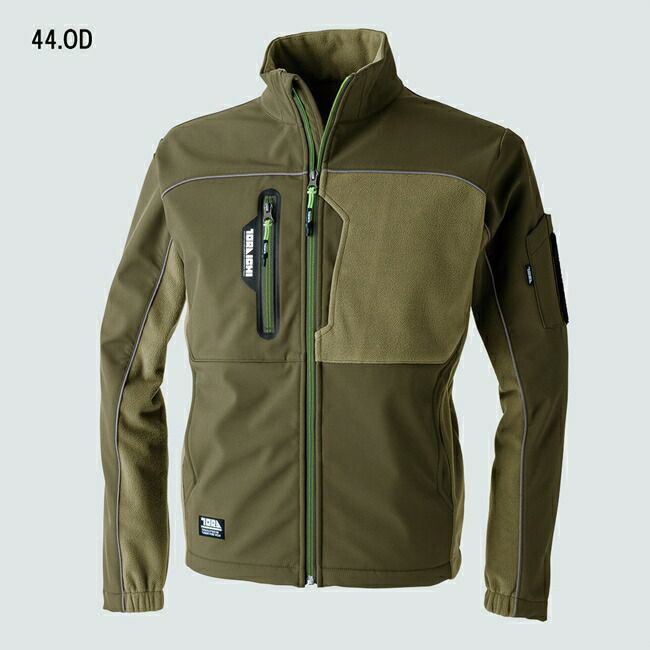 反射材のパイピングにより暗所での視認性も考慮したデザインの防寒ブルゾン