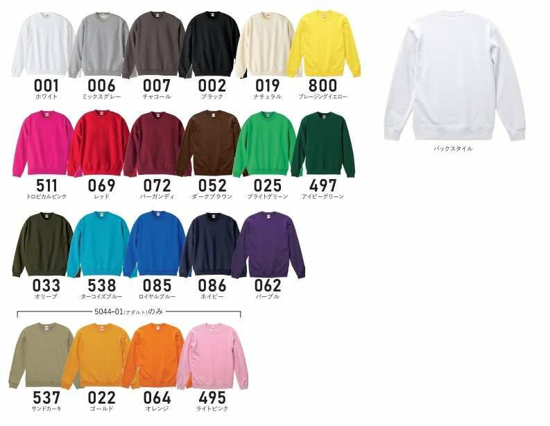 ユナイテッドアスレ(United Athle) 10.0オンス クルーネック スウェット 〈110・130・150cm〉 5044-02