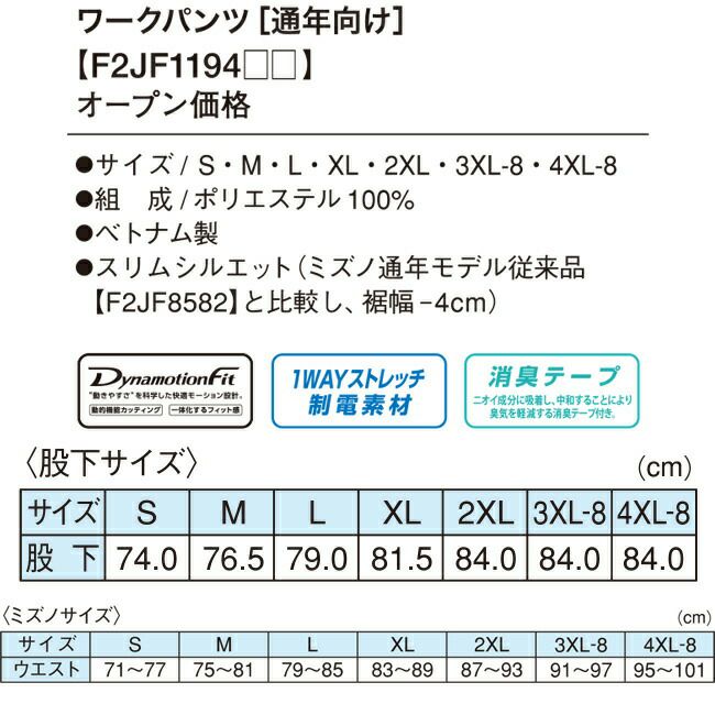 股上:S/24.9cm、M/25.7cm、L/26.5cm、XL/27.3cm、2XL/28.1cm、3XL-8/28.5cm、4XL-8/28.9cm