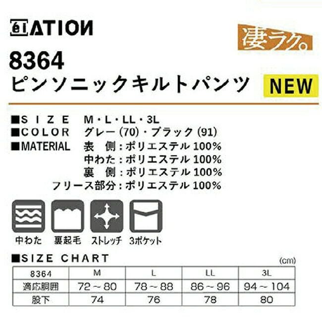 カジメイクのピンソニックパンツ8364は、快適さと機能性を兼ね備えた一着です。