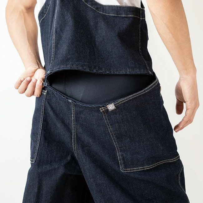 ストレスを感じることがない高いストレッチ性のデニム生地を使用。名前の通り、着るシーンや着る人の性別・年代などを選ばずに着て頂けるウェア。ヒップオープンファスナーを採用したので、お手洗い時のあのストレスから遂に解放されます。ギミック溢れる収納が豊富で、仕事での快適性を考えるだけではなく、普段からこれを着て過ごしたくなる便利さも追求しました。仕事でも遊びでも着たくなる、まさに今の時代に沿ったボーダレスなウェアです。