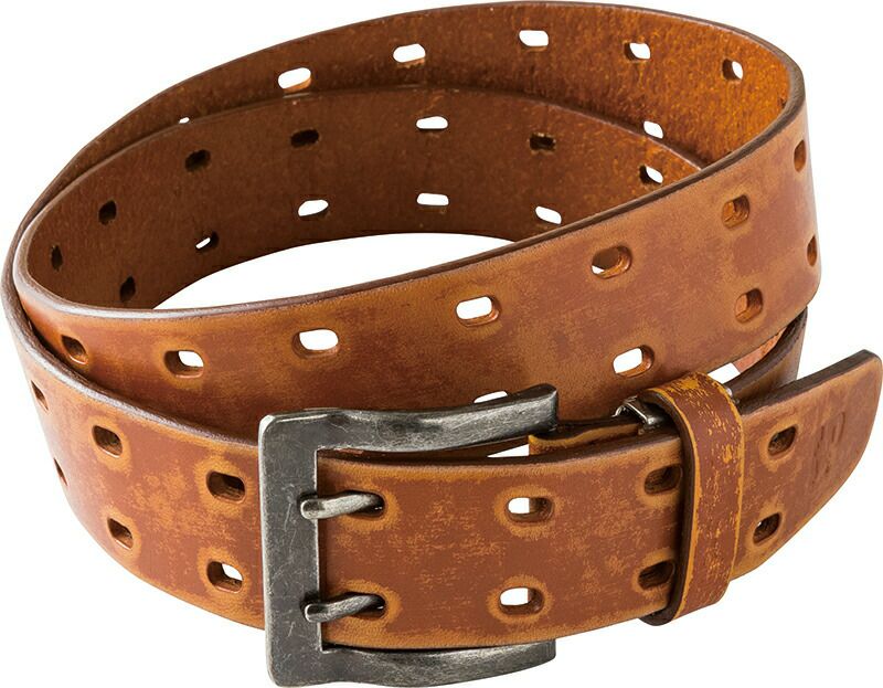 数多くあいたベルト穴もデザインの一部となってこのベルトの特徴となっています。