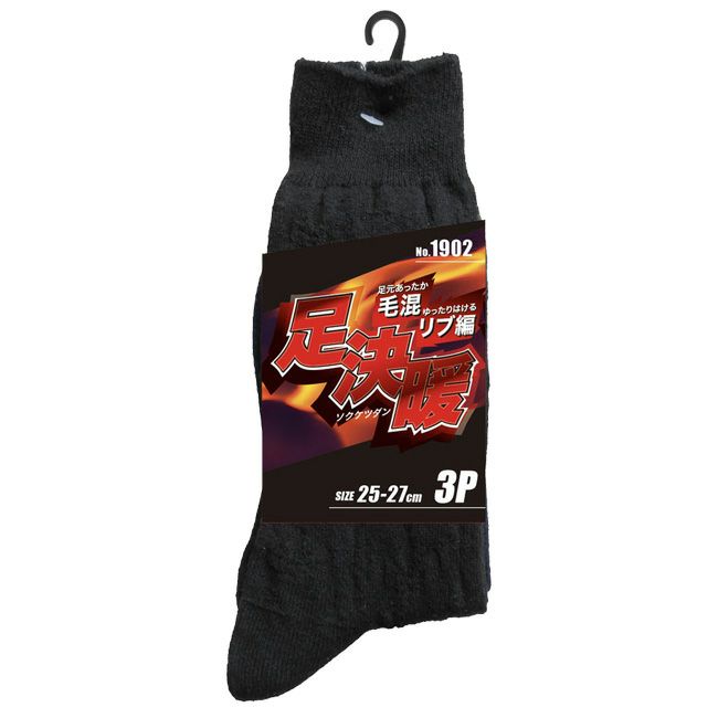 富士手袋 足決暖 毛混リブ編み 3P 1902 |靴下 ソックス 3足組 アソート メンズ 作業 防寒 秋 冬