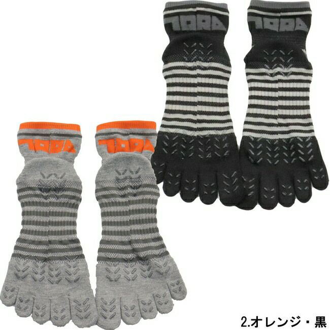 5本全ての指先まで施したシリコンプリント。幅広で靴の中で指先が滑りやすい状況でもしっかりとグリップ。ここ一番の踏ん張りがきくスグレモノです。