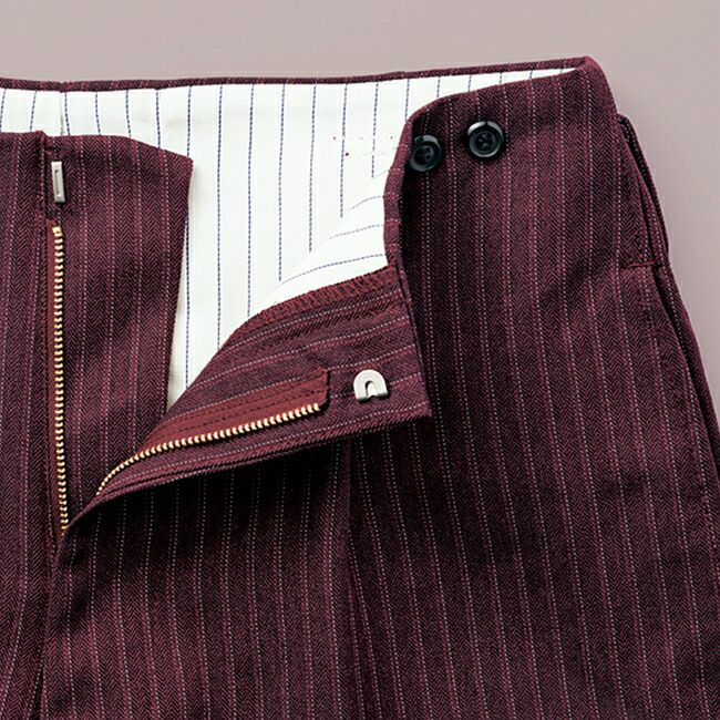 変わり織り独自の風合い、ピンストライプが加わって、いっそうオリジナリティのある雰囲気です。