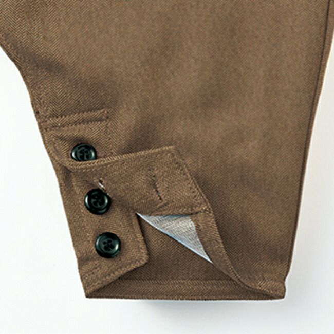 裾の三つボタンは、仕事へのこだわりに通じるディテールともいえます。