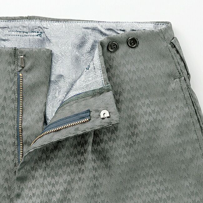 光沢感のある昼夜織りとヘリボーン柄の組み合わせが独創的なスタイリングを可能にします。