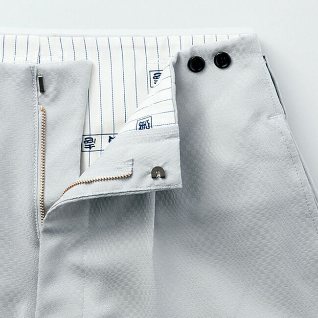 ロングニッカの定番カラーに刺激を与えるのは、キューブ柄素材。