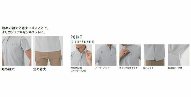 他の画像を見る ワイヤー入りの衿先で、絶妙な「立ち」がアクセント。ボリューム感のある丈夫な生地はハードな現場にもうってつけ。 G-9117 半袖ポロシャツ 消臭 販売価格 ¥ 3,025 税込 〜 販売価格 ¥ 税込 詳細を見る お気に入りに登録する