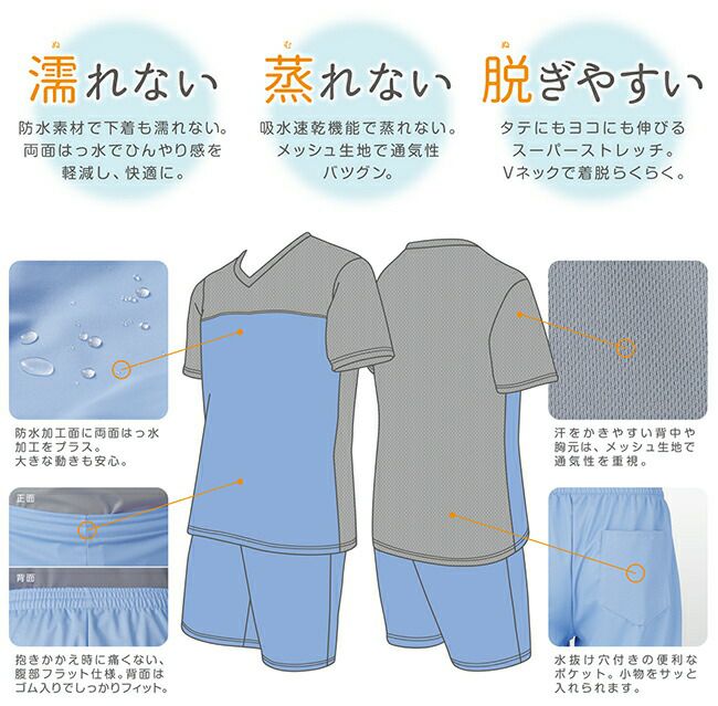 お腹から下部を覆うので、水ハネ防止に効果があります。