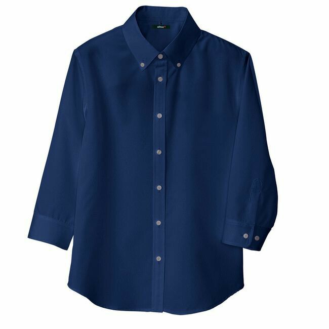 サラッとした肌触りで着心地爽快。 すばやく汗を吸い、風通しが良い軽量シャツ。 AZ-8057 アイトス レディース七分袖ボタンダウンシャツ