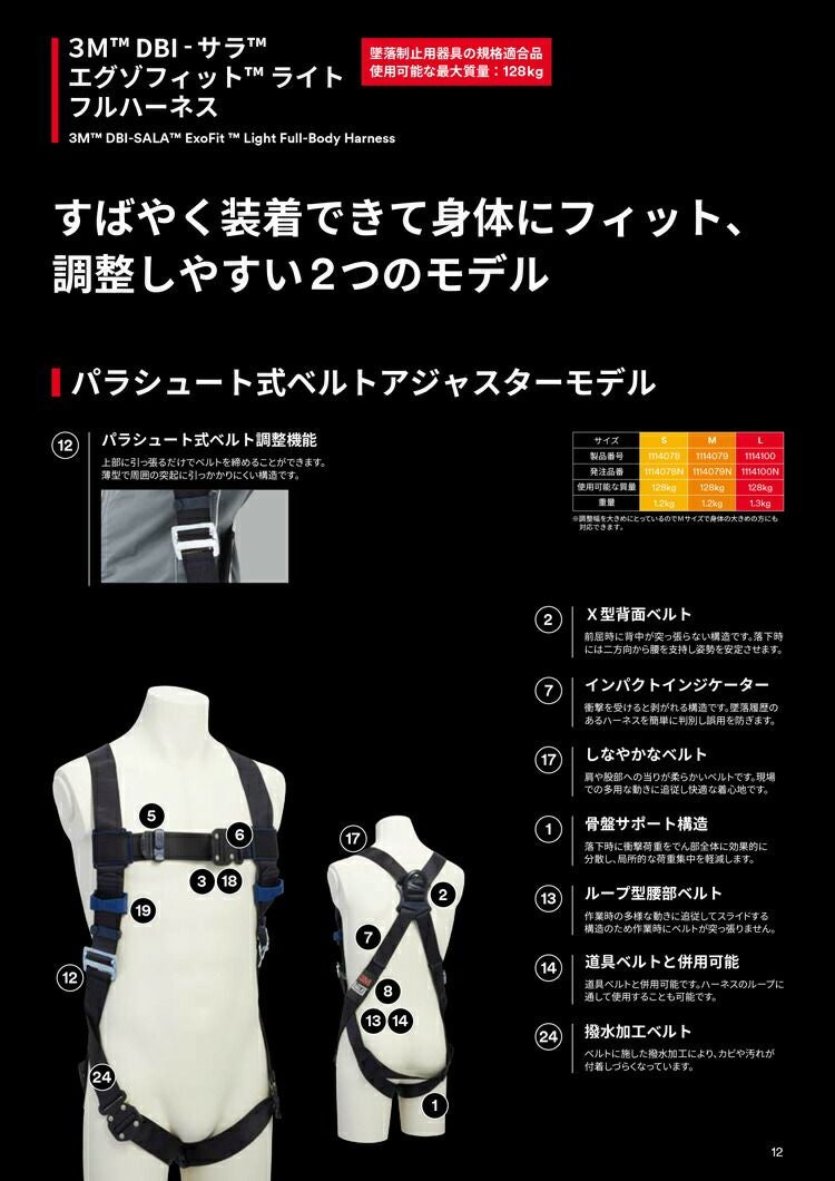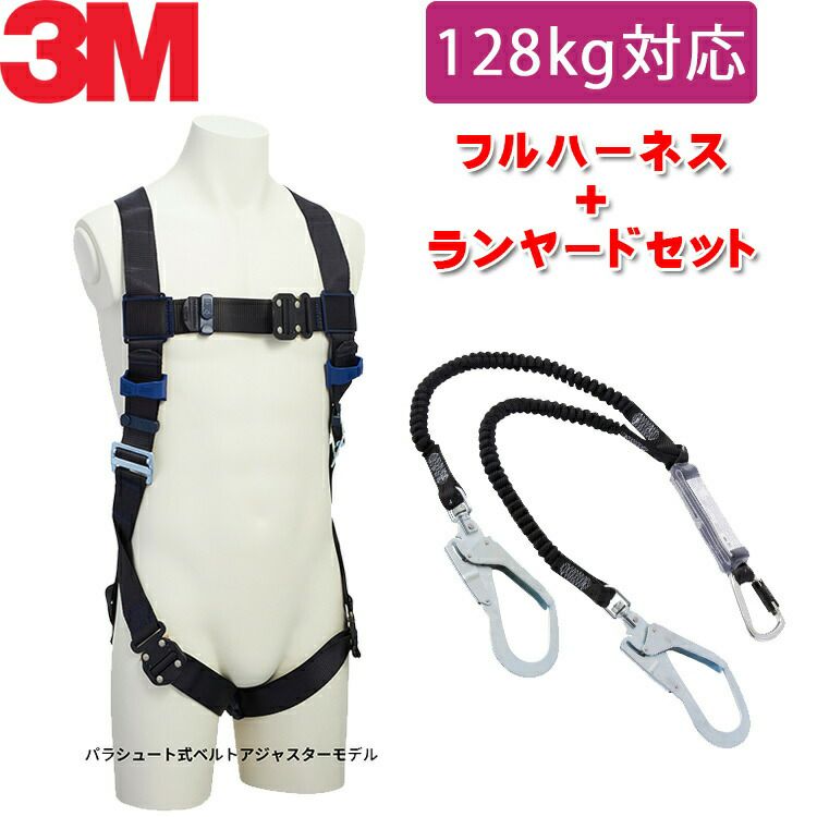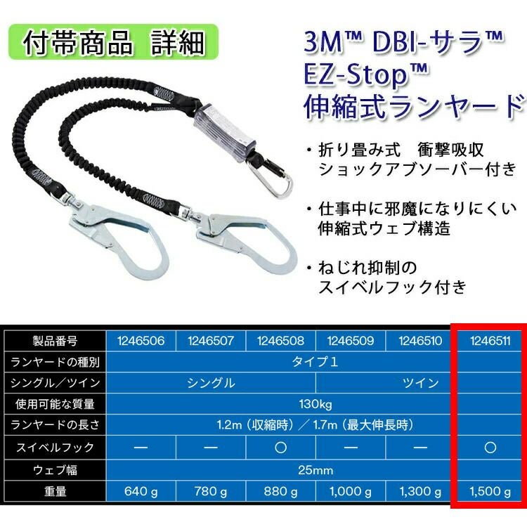すばやく 装着 できて 身体 に フィット 【130kg 対応 ランヤード セット品】 3M フルハーネス 【DBI-サラ エグゾフィット ライト】 パラシュート式ベルトアジャスターモデル + 3M DBI-サラ EZ-Stop 伸縮式ランヤード タイプ1 ツイン 12464731114078 1114079 1114100