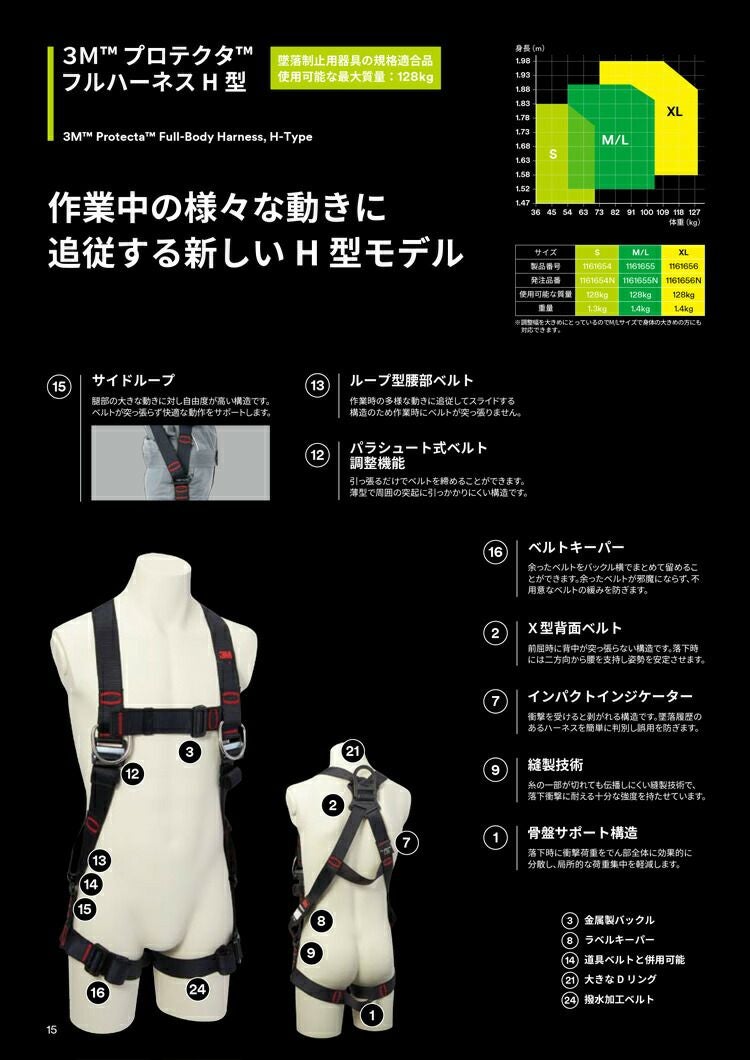 作業中 の 様々 な 動き に 追従 する 新しい H型 モデル 【130kg 対応 ランヤード セット品】 3M プロテクタ フルハーネス H型 + 3M DBI-サラ EZ-Stop 伸縮式ランヤード タイプ1 ツイン 1246473 1161654 1161655 1161656