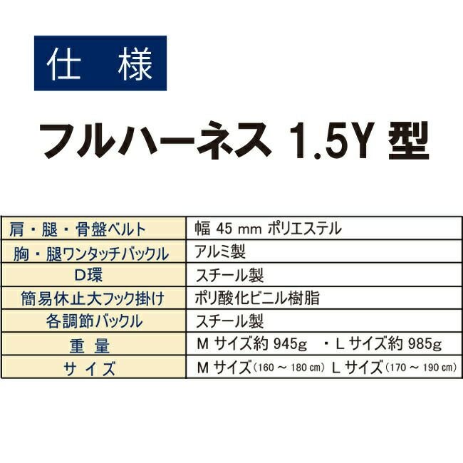 使用者の使いやすさと安全性を追求したハーネス 椿モデル ハーネスY型 HYF1.5-M-BL / HYF1.5-L-BL(腿アルミ)