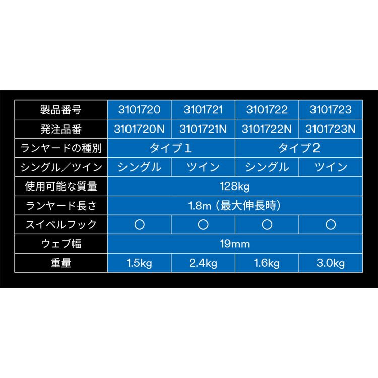 作業時 は 常に ランヤード 長 が 最短 に 墜落 抑制 時 には ロック 機能 で 落下距離 を 調整 3M ランヤード 【type1 シングル】 DBI-サラ Nano-lok ナノロック 巻取り式 3101739