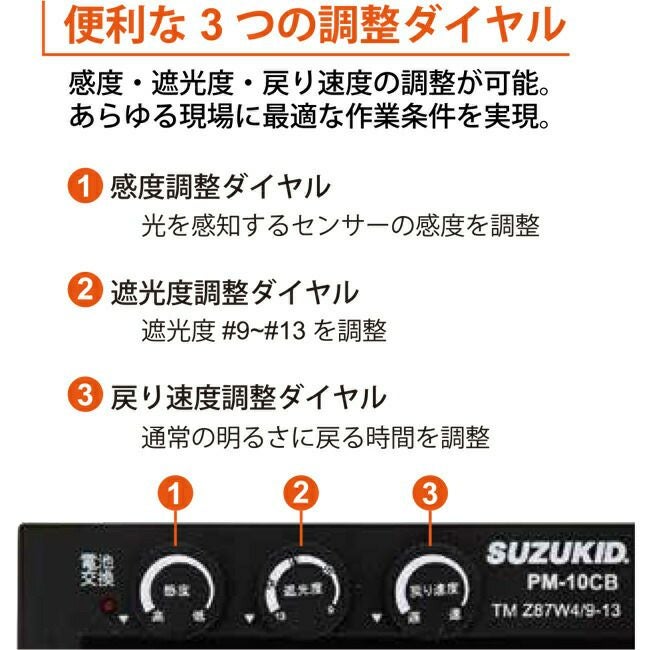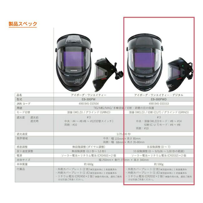 他の画像を見る 新感覚 180° パノラマ ワイドビュー 日本初 3面 自動 遮光 タイプ SUZUKID 【EB-300PWD】 デジタル式 三面 自動 遮光 溶接面 アイボーグ ワンエイティ 180 定価 ¥ 76,000 販売価格 ¥ 52,250 税込 カートに入れる お気に入りに登録する