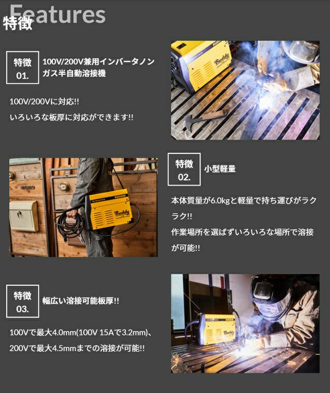 小型軽量・ノンガス専用を継承し、幅広い電源環境や、溶接作業性を実現!