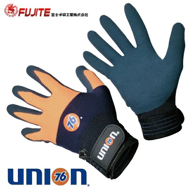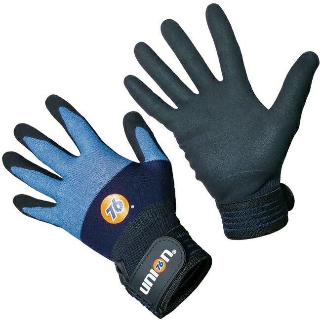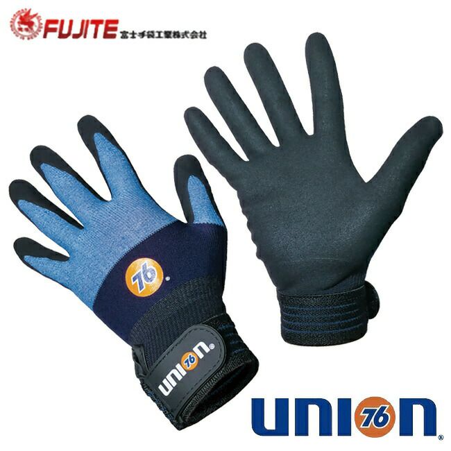 76 Unionシリーズのクールなニトリルゴム手袋! 富士手袋 ニトリルゴム 背抜き手袋 マジック付き 76-103