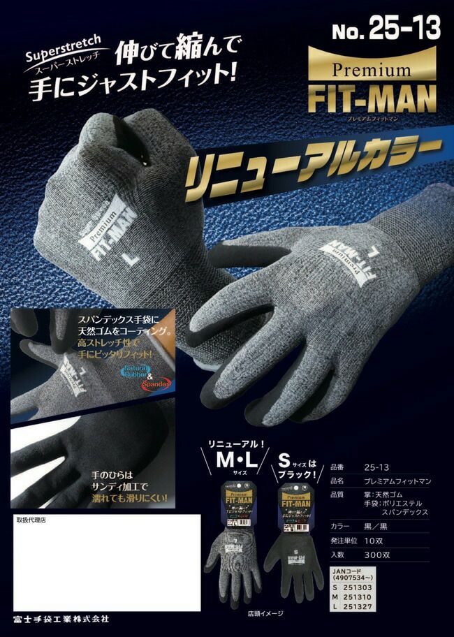 富士手袋 25-13 プレミアムフィットマン(S・M・L)10双