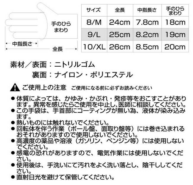 素材 手の平:ニトリルゴム/手袋繊維:ナイロン・ポリエステル