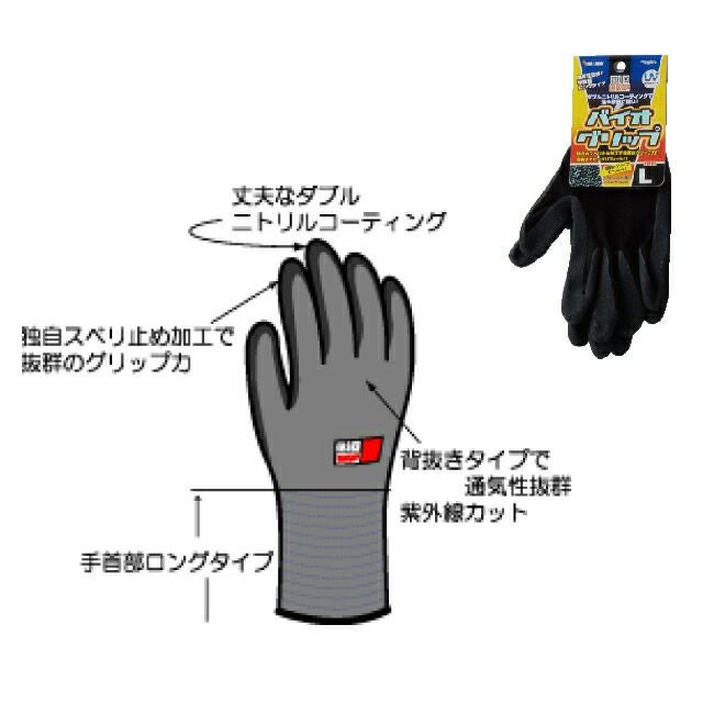 ●手のひら、指にニトリルゴムをコーティングした、丈夫な手袋です。